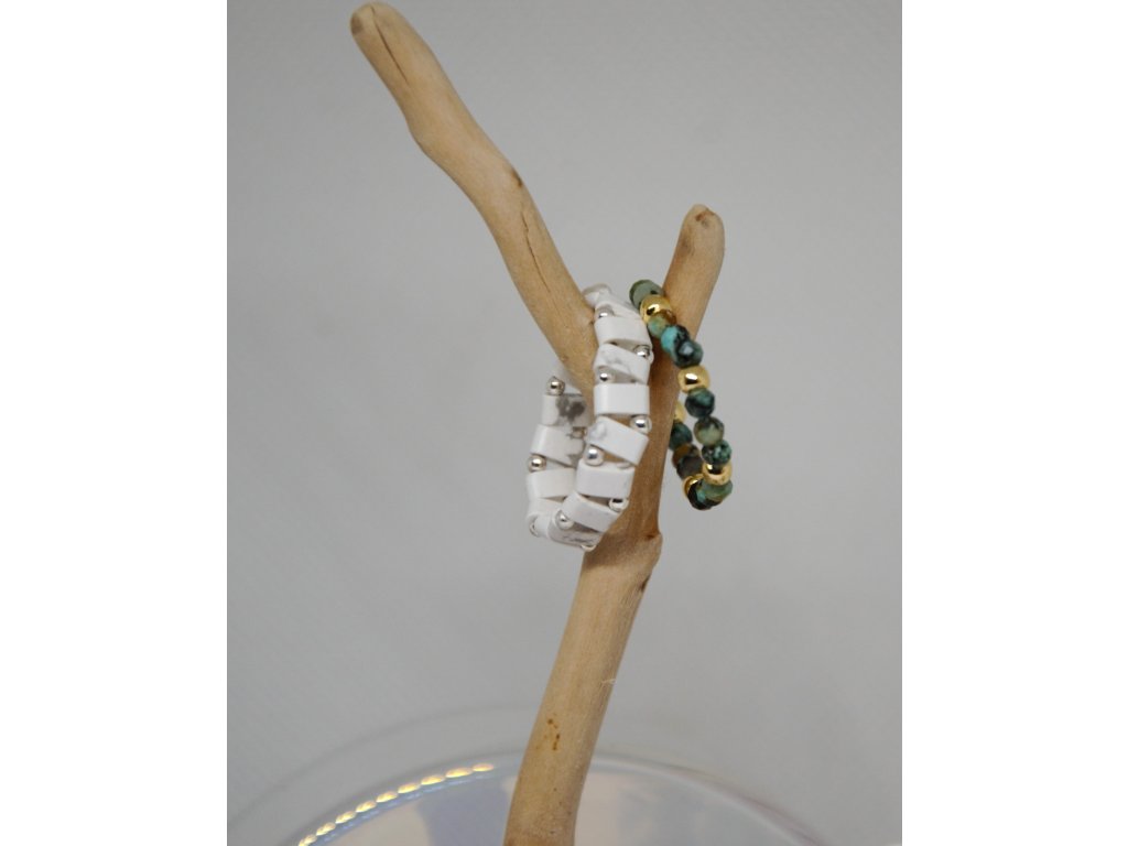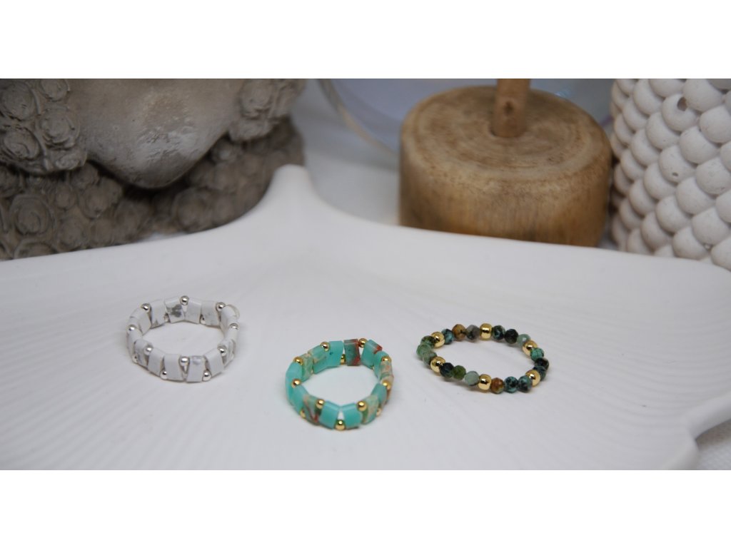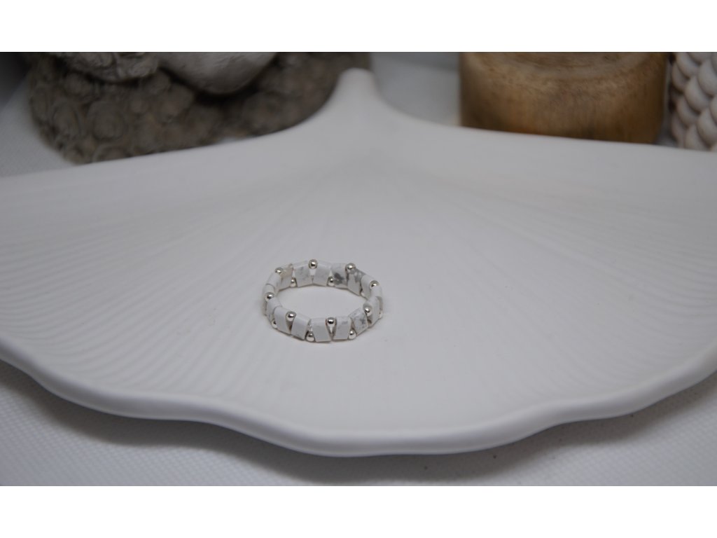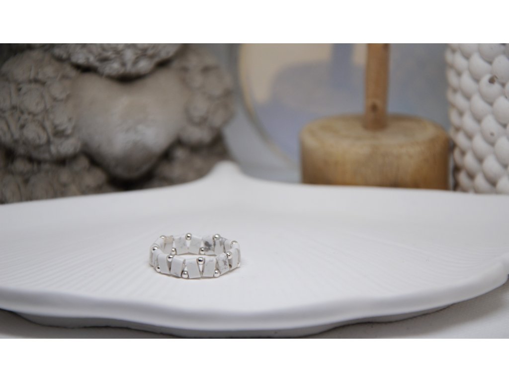 Krásný šitý mramorový prstýnek se stříbrnými korálky.